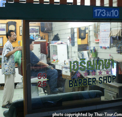 ร้านตัดผมแบบเดิมๆ จากฝั่งทางเข้าคลองบางพลี
