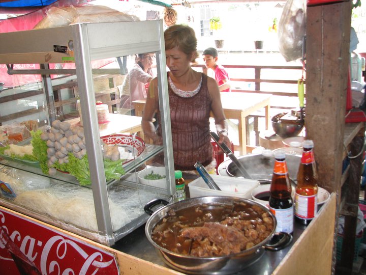 ไปมาเหมือนกันค่ะ เดินข้ามเรือมาจากฝั่งบิ๊กซีมีร้านก๋วยเตี๋ยวเย็นตาโฟ ต้มยำแล้วก็มีอาหารตามสั่งด้วยค่ะ อร่อยๆมากๆเลยเป็นร้านที่อยู่ตรงทางปูนอ่ะค่ะ คนขายใจดีด้วยค่ะแล้วก็มีน้ำแข็งไส ถูกใจมากเลยค่ะ จพาครอบครัวไปอีก