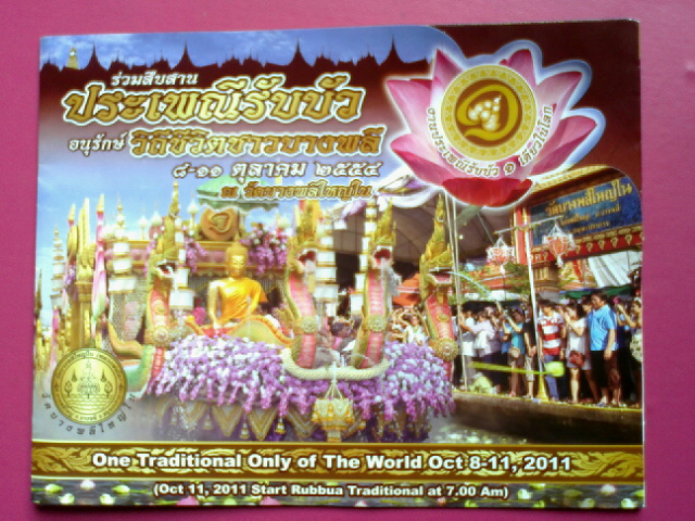 วันที่ 11 ตุลาคม 2554 เวลา 7.00 น. ขอเชิญร่วมงานประเพณีรับบัวของชาวบางพลีกันนะคะ..