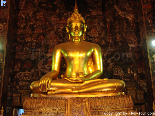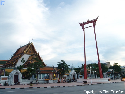Wat Suthat is a royal temple of the first grade, one of six such temples in Thailand. Construction was begun by His Majesty King Rama I in 1807 (B.E. 2350). Further construction and decorations were carried out by King Rama II who helped carve the wooden doors, but the temple was not completed until the reign of King Rama III in 1847 (B.E.2390). This temple contains the Buddha image Phra Sri Sakyamuni or "Sisakayamunee" which moved from Sukhothai province. At the lower terrace of the base, there are 28 Chinese pagodas which mean the 28 Buddhas born on this earth. Wat Suthat also contains Phra Buddha Trilokachet in the Ubosot (Ordinary Hall) and Phra Buddha Setthamuni in Sala Kan Parien (Meeting Hall)