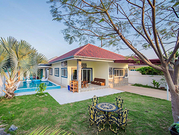 Fin Pool Villa is a private luxury Thai modern style villa, located in Huahin 70. This private villa was a mix of wood and modern electricity appliances. There are 2 bedroom villa with an outdoor private pool and garden.
