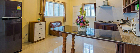Kitchen offers modern design with full amenities such as electric stove, electric kettle, rice cooker, toaster, full sets of kitchenware, microwave and refrigerator. The villa offer BQQ stove and dining area with a dining table at outside.