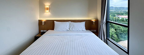 The hotel features 74 rooms, including Standard Double Rooms and Standard Twin Rooms. Each room is designed for comfort and functionality, perfect for a relaxing stay in the heart of Kanchanaburi.