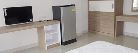 This apartment comes up with 10 units of bedrooms, fully furnished with furniture, hot & cool water, air conditioner, desk, television and refrigerator.