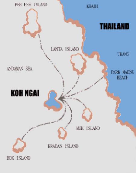 Koh Ngai Resort located on Koh Ngai or Koh Hai in Trang Province, Thailand. You can go there by many ways such as by airplane, by air-con bus, by boat, and by car.