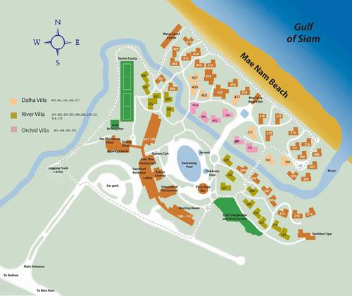 At the northern tip of the island within easy access of the island's scenic attractions, it is situated in between the town of Nathon, Koh Samui's commercial center and Chaweng beach, the bustling tourist hub. These towns are located approximately 20 minutes by taxi or private car either way from the Santiburi Dusit Resort. Bohput or " Fisherman's village " among the oldest of Koh Samui's fishing hamlets stretching along the coastline is some 10 minutes drive from the resort, and is a favorite among visitors for dining out. Koh Phangan famous for its regular moon parties is a short boat ride across from the resort. Many favored diving spots are within easy reach and sailing arrangements can be made directly with the resort for a fee. Regular sailings are usually available from the main land at Surat Thani City or ferry from Don Sak pier. Sailing time is approximately two to three hours with disembarkation in Nathon. Samui airport is a 15-minute drive from the resort. Samui can be reached via regular scheduled direct flights from Bangkok, Pattaya, Hua Hin, Phuket and Singapore.