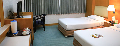 River Hotel offer all air-conditioned rooms, categorized into 3 types: Twin Bed, Double Bed (1 big bed) and suite room (3 persons). Coffee/Tea maker are available in all rooms.