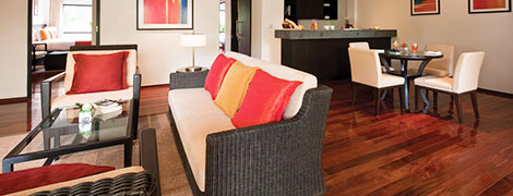 179 spacious rooms feature fresh and contemporary design, fully equipped with air-conditioners, flat-screen TVs, refrigerators, and private balconies overlooking the gardens and the Lagoon swimming pool. En-suite bathroom comes with shower, hairdryer, and bath amenities. Additionally, accessible room available.