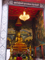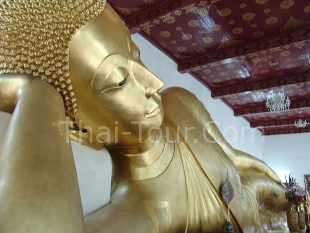 Sukvatanaram. Feeding fish can be done in front of Wat
