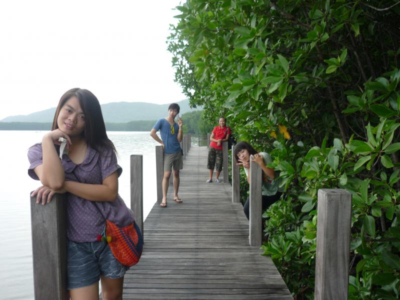 ส่วนที่สร้างความเพลิดเพลินในจิตใจได้เป็นอย่างดี ก็เห็นจะเป็นระบบนิเวศของป่าชายเลน อันหลากหลายแต่ว่าต่างก็อยู่ร่วมกัน อย่างผสมกลมกลืนเป็นน้ำหนึ่งอันเดียวกัน นั่นโกงกางใบเล็ก โน่นโกงกางใบใหญ่ที่โผล่รากออกมา ช่วยหายใจเต็มผืนเลน นอกจากนี้ก็มี ต้นฝาด ต้นฝาดแดง แสมขาว แสมดำ ลำพู ลำแพน ตะบูน ประสัก ฯลฯ ส่วนที่น่าเศร้าใจในช่วงแรก ก็เห็นจะเป็น ตอแสม ขนาดเขื่อง ที่ถูกไฟจากน้ำมือมนุษย์เผาตายสนิท...นี่แหละหนาฤทธิ์เดชของคนที่หากไม่อนุรักษ์ไว้ อนาคตบางทีป่าชายเลนแห่งนี้ จะสูญสิ้นไปจากเมืองไทยก็ได้