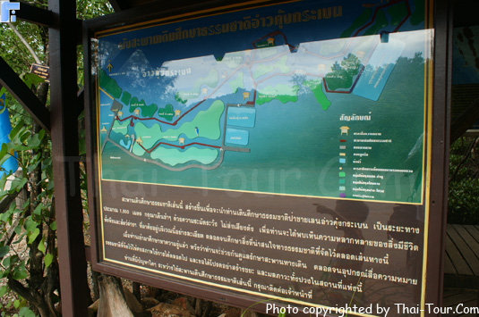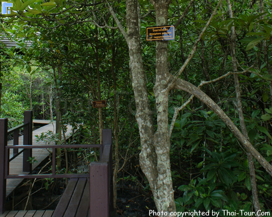 ระหว่างทางจะมีศาลาให้ความรู้ในเรื่องราวต่างๆ ของป่าชายเลน รวมถึงป้ายสื่อความหมายพันธุ์พืช พันธุ์สัตว์ไปเป็นระยะๆ ตลอดเส้นทาง