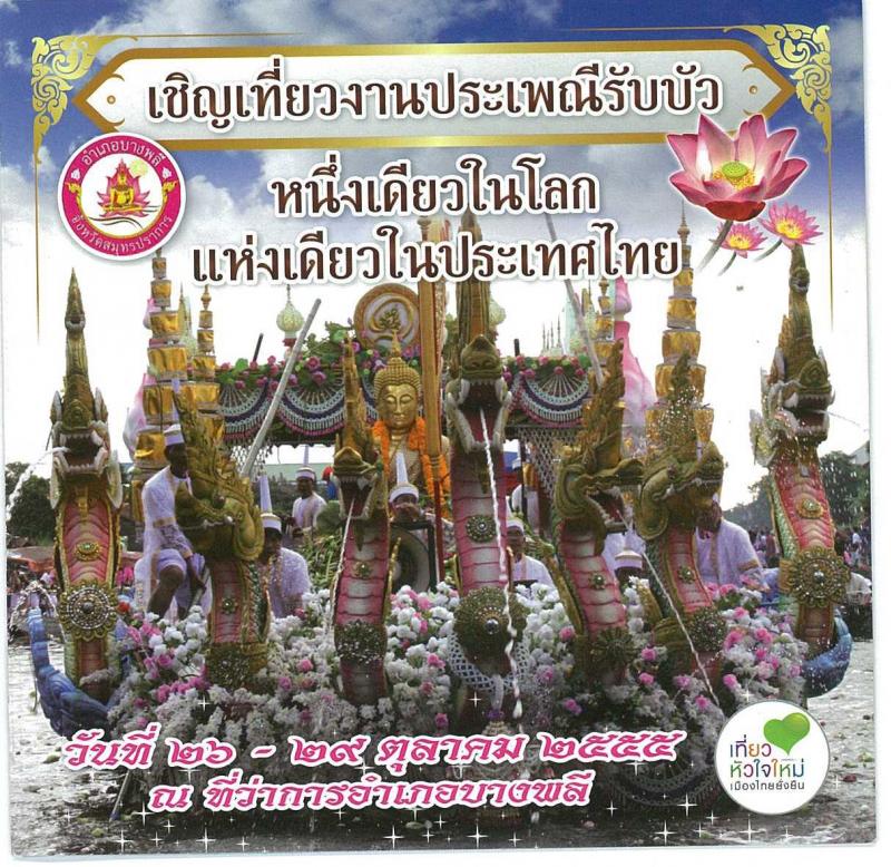 วันที่ 29 ตุลาคม 2555 ขอเชิญร่วมงานประเพณีรับบัวของชาว อ.บางพลี จ.สมุทรปราการ กันนะคะ มากันเช้าๆ นะคะ