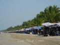 is a famous beach that has enjoyed lasting popularity. Approximately 13 kilometers from the city ofChon Buri, it branches off to the right-hand side from Sukhumvit Highway, at kilometers 104, for a distance of 3 kilometers. Stretching along the beachfront, is a 2.5 kilometer Road. Along the beach, one finds vendors offering drinks and seafood snacks such as squid, mussels and spicy steamed-fish-cakes for sale. One can rent deck chairs and rubber rings for swimming. Fresh water bathing facilities are also available. The many restaurants that line the beach have recently been improved to become more neat and orderly. Bang Saen is ideal for visitors with limited time who wish to relax with their family and friends. It also offers several hotels and bungalows for overnight lodging.