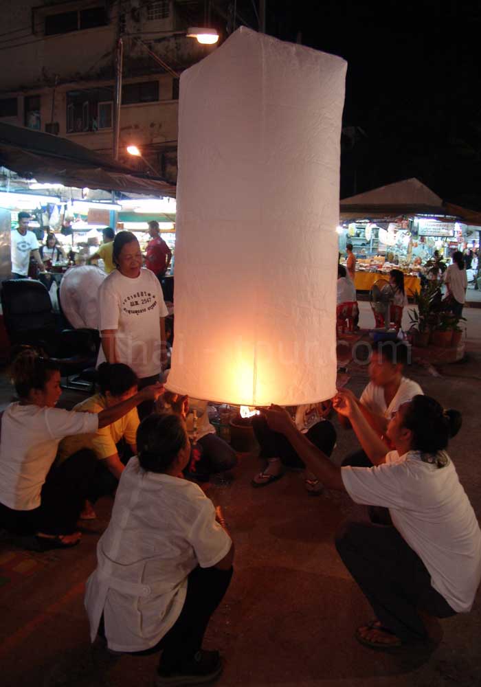 ถ้าลอยตอนกลางวัน จะทำให้โคมลอยโดยใช้ควันไฟ