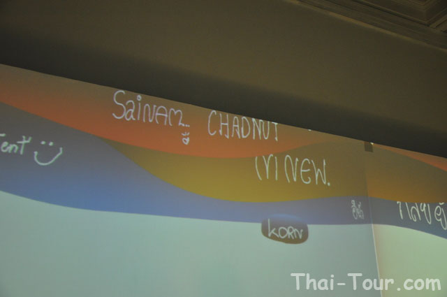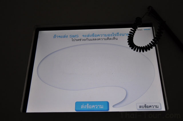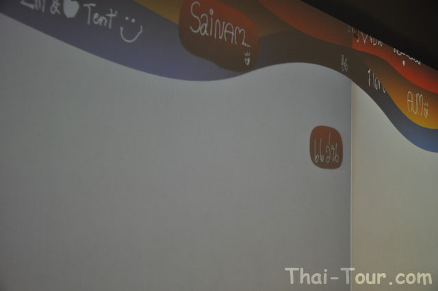 มองไปข้างหน้า ห้องสำหรับแสดงความคิดเห็นของผู้เข้าชม ด้วยระบบคอมพิวเตอร์แสดงข้อความบนผนัง