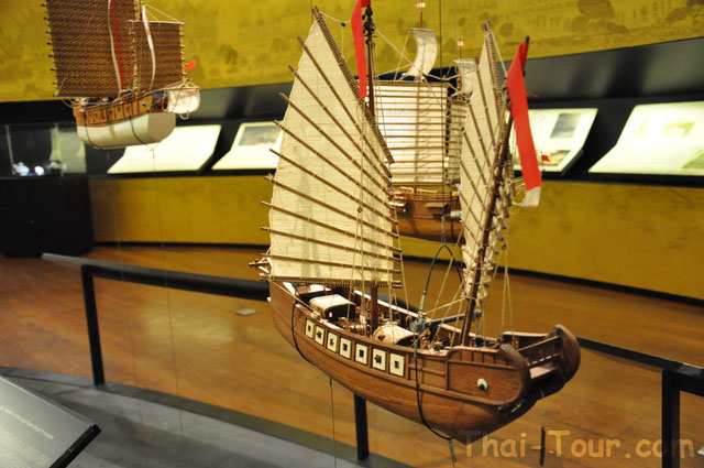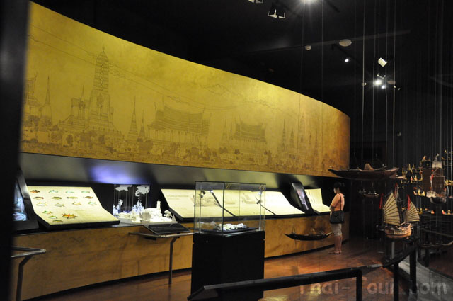 สยามประเทศ ห้องแสดงเรื่องราวความเป็นอยู่ในสมัยอยุธยา และรูปจำลองเรือแบบต่าง ๆ ตั้งแต่เรือพื้นบ้านถึงเรือพระราชพิธี