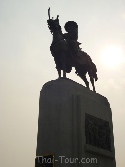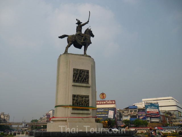 อยู่บริเวณวงเวียนใหญ่ ถนนประชาธิปก ประดิษฐานอยู่ในลักษณะทรงม้า พระหัตถ์ขวาทรงพระแสงดาบ ส่วนสูงวัดจากพระบาทถึงยอดพระมาลา รวม 14 เมตรเศษ ประกอบด้วยชานชาลาคอนกรีตสูงจากพื้นดินโดยรอบ 1.70 เมตร ได้ทำการเปิดเป็นปฐมฤกษ์ เมื่อวันที่ 17 เมษายน พ.ศ.2497 และมีพิธีสักการะพระบรมรูป ในวันที่ 28 ธันวาคม ของทุกปี