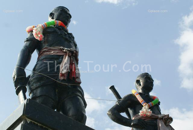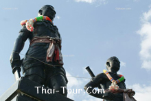 มีรูปปั้นแสดงเหตุการณ์ในประวัติศาสตร์เกี่ยวกับสงครามไทย-พม่า