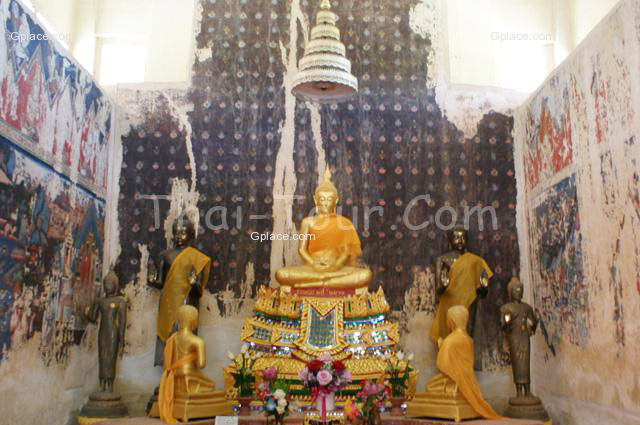 พระอุโบสถมีภาพเขียนฝาผนังที่งดงาม