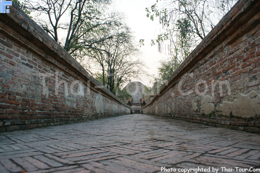 เป็นทางเดินที่มีกำแพงตั้งอยู่ทั้งสองข้างทางเดิน เชื่อมระหว่างซุ้มประตูทางเข้าและพระอุโบสถ ลักษณะกำแพงเป็นกำแพงที่มีบัวประดับอยู่ด้านบนคล้ายกำแพงแก้วเป็นทางเดินสำหรับพระมหากษัตริย์ หรือเจ้านายชั้นสูง ใช้เสด็จเข้าออก