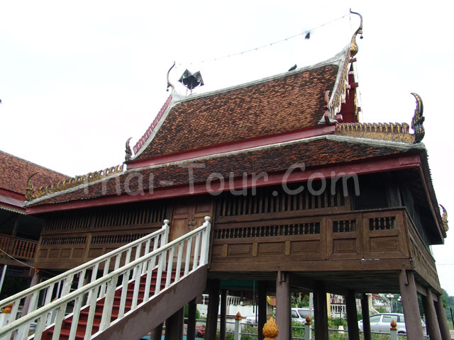 หอพระไตรปิฎกแห่งนี้สร้างแบบทรงไทยตั้งอยู่กลางสระน้ำ