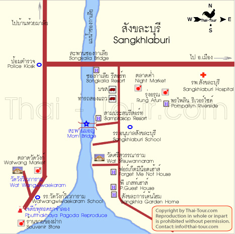 เข้าทางตลาดสดสังขละบุรีตรงเข้าไปตามป้ายเกือบสุดทาง มีกิจกรรมล่องแพ