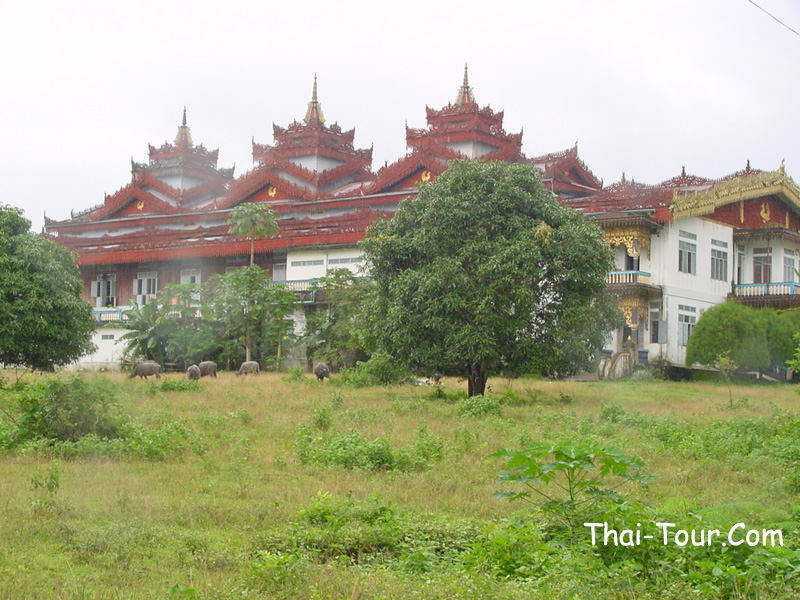จึงเป็นที่มาของชื่อวัด มีสถาปัตยกรรมสวยงาม บริเวณวัดยังมีตลาดให้เลือกซื้อสินค้าจากพม่า