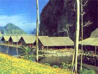 แพผาผึ้ง แพผาผึ้ง เป็นแพสุดแดนตะวันตก ตั้งอิงแอบเกาะป่าไผ่ อยู่เบื้องหน้า "เกาะผาผึ้ง" ใน "ทะเลสาบวชิราลงกรณ์" (ทะเลสาบเขาแหลม) ซึ่งเป็นทะเลสาบซึ่งกินเนื้อที่ 2 อำเภอ คืออำเภอทองผาภูมิ และอำเภอสังขละบุรี เป็นดินแดนของม่านหมอกที่เยือกเย็นในฤดูหนาว ป่าไม้เขียวชอุ่มในฤดูฝน และสีสันอันสวยงามของดอกไม้ป่า และกล้วยไม้นานาพันธุ์ในฤดูร้อน ทะเลสาบวชิราลงกรณ์ เป็นทะเลสาบที่มีเกาะแก่งมากมายแต่เป็นที่ยอมรับกันว่าเกาะที่สวยงาม และโดดเด่นที่สุดในทะเลสาบนี้ก็คือ "เกาะผาผึ้ง" ซึ่งมีผาสูงเสียดฟ้าและอุดมไปด้วยแมกไม้ และถ้ำน้อยใหญ่มากมาย ทะเลสาบในหุบเขาเบื้อง ล่างของเกาะนี้สวยสด และสงบนิ่งอยู่ในอ้อม กอดของเพิงผา และป่าไม้ไผ่อันร่มรื่น ณ สถานที่นี้ แพผาผึ้ง ก็คือ ความซาบซึ้งในรูปแบบของชีวิตริมทะเลสาบ ที่น้อยคนนักจะมีโอกาส ได้สัมผัส การใช้ชีวิตบนเรือนแพชั้นดี นอนบนฟูกหนาและนุ่มเล่นน้ำจืด ในทะเลสาบที่ใสสะอาด พายเรือชมทัศนียภาพของเกาะ ชมผา ชมถ้ำ ชมทิวทัศน์สลับซับซ้อนของเทือกเขา พักผ่อนในร่มเงาของป่าไผ่ เล่นแคมป์ไฟโดยมีฉากของผาสูงทาบขอบฟ้า และอิ่มโอชากับรสชาติ ของปลาสด ๆ ในทะเลสาบ นอกจากนี้ " แพผาผึ้ง " ยังเพิ่มกำไรใหด้วยการนำท่านเดินทาง สุดแดนตะวันตก นั่งเรือด่วนชมความงามของ ทะเลสาบ ชมวัดวังก์วิเวการาม นมัสการหลวงพ่ออุตตะมะ ชมหมู่บ้านมอญอพยพ ชมด่านพระเจดีย์สามองค์ตรงเข้าสู่ดินแดนพม่า หาซื้อของที่ระลึก และกลับมาชมน้ำตกเกริงกระเวีย เพื่อให้สมกับความตั้งใจของเรา ที่จะ ให้ท่าน ได้ดื่มด่ำความสุขให้เต็มที่ในวันพักผ่อนอันมีค่าของคุณ พักแพผาผึ้ง ซาบซึ้งสุดแสน ท่องเที่ยวทั่วแดน อาทิตย์อัสดง |
