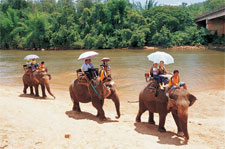 นักท่องเที่ยวที่พักที่สวนไทรโยคสามารถเดินทางไปเที่ยวชมหมู่บ้านช้าง (ห่างจากรีสอร์ท 6 กิโลเมตร) เพื่อชมการแสดงของช้างน้อยน่ารักที่จะมาโชว์ความแสนรู้และความสามารถพิเศษมากมาย อาทิ เดินสองขา เล่นดนตรี กีฬา และยังได้ตื่นเต้นกับการขี่ช้างท่องป่าลุยแม่น้ำแควน้อย ประสบการณ์ที่ไม่ควรพลาดในการมาเยือนจ.กาญจนบุรี (ขี่ช้างเสียค่าใช้จ่ายเพิ่มท่านละ 100 บาท)