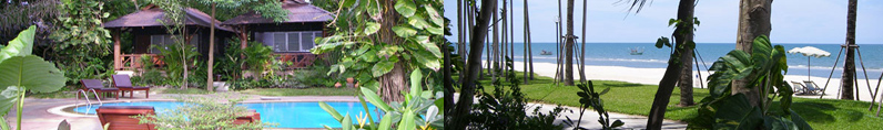 • By Car from Bangkok by Petchkasem Rd. around 382 Kms. from Bangkok, 20 Kms. From Thabsakae Disrrict. At the Tourist information sign "Baan Krud", turn left, Then go further for 9 kms. Here you........Baan Klang Aow Beach Resort