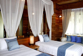The Clubhouse is where our guests can enjoy sumptuous meals, which are prepared from the freshest ingredients, such as vegetables, fruits, and herbs that are organically grown in our own Keeree Waree Garden. The clubhouse itself is uniquely constructed in the traditional Thai style architecture, with a 180 square-meter wooden verandah that is connected to the On-the-Beach Deck, which perches right on a private beach where our guests can enjoy the coolest breeze from the sea, and an endless romantic night on the night of a full moon.