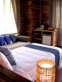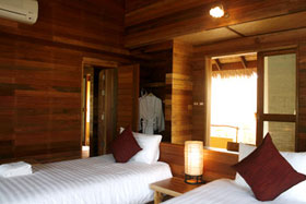 Each of the three Grand Pool Villas offers the largest living space for extra comfort. A private Jacuzzi in an enclosed garden is attached to each villa. Our guests can also enjoy the view of the sea in the most romantic ambience. This group of villas is designed to accommodate honeymooners with interior decoration that uses warm and soft natural fabrics and materials, completed with all the luxurious room facilities.