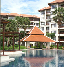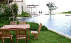Sri Lanka, Bali and Sukhothai, surrounded by a lush tropical garden and