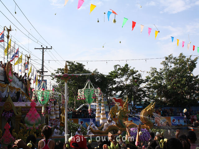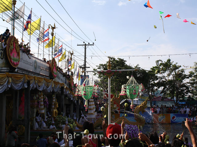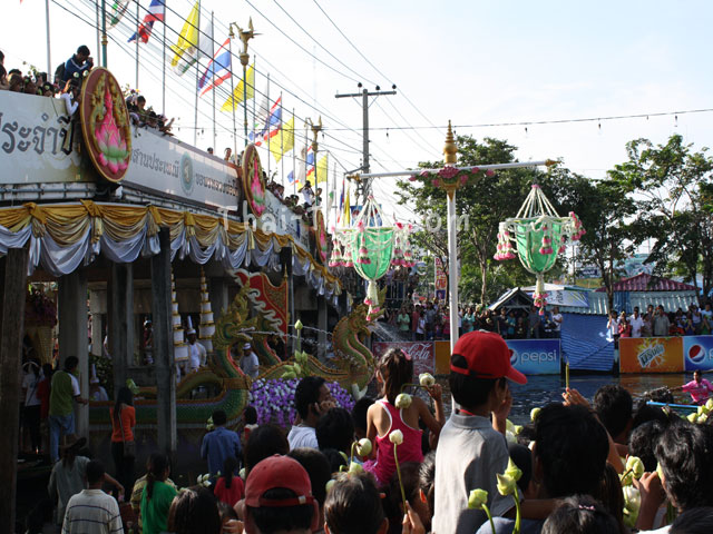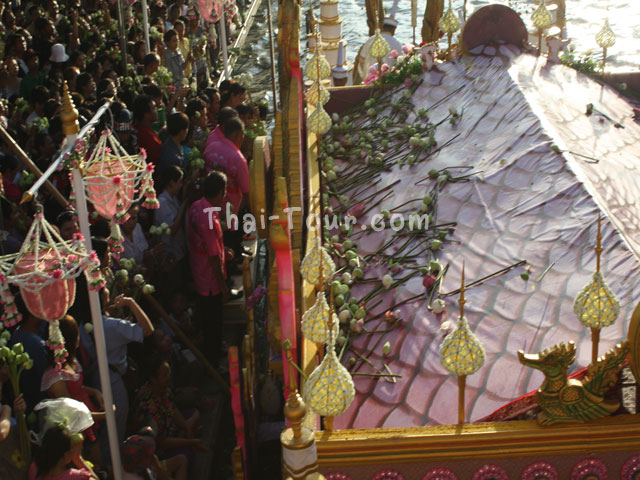 โดยประชาชนจะโยนดอกบัวลงในเรือขบวนแห่พระพุทธรูปจำลองของหลวงพ่อโต