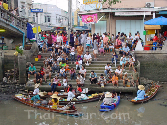 เดินผ่านตลาด ข้ามคลองอัมพวา ตรงไปถึงวัด