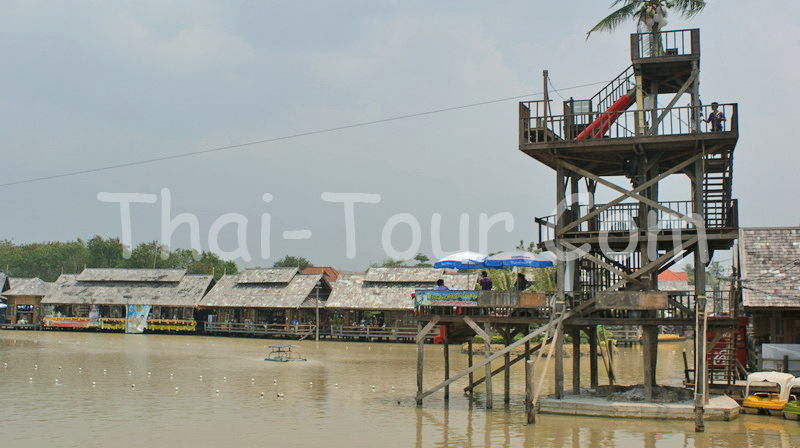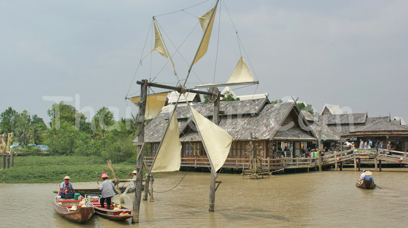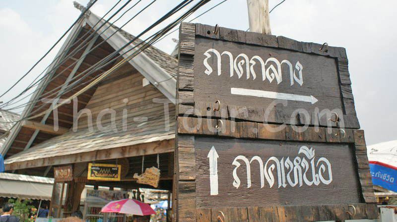 ตลาดน้ำ 4 ภาค ได้จำลองทั้ง 4 ภาคในประเทศไทย และได้แสดงออกมาให้รูปแบบต่าง ๆ เช่น การแต่งกาย และจะมีจุดเด่นของแต่ละภาคคือ จะมีหน้าจั่วที่มีลักษณะที่แตกต่างกัน อย่างเช่นเรือนภาคเหนือ จะมีเอกลักษณ์คือกาแลไม้แกะสลัก อย่างงดงาม มีจำนวน 43 หลัง ภาคอีสานหน้าจั่วจะมีรูปรัศมีสีของพระอาทิตย์เรือนรอง เรียกว่า ยอดธง ประกอบด้วย เรือน 22 หลัง ภาคกลางจั่วจะเป็นปั้นลมมีจำนวน 31 หลัง และภาคสุดท้ายคือภาคใต้ จะมีจั่วที่เรียกว่าปีกผีเสื้อ ประกอบด้วยเรือน 15 หลัง