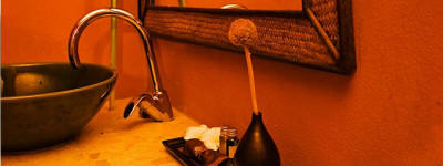 in the sun-flecked shade of the tress and semi out-door bathing, yet