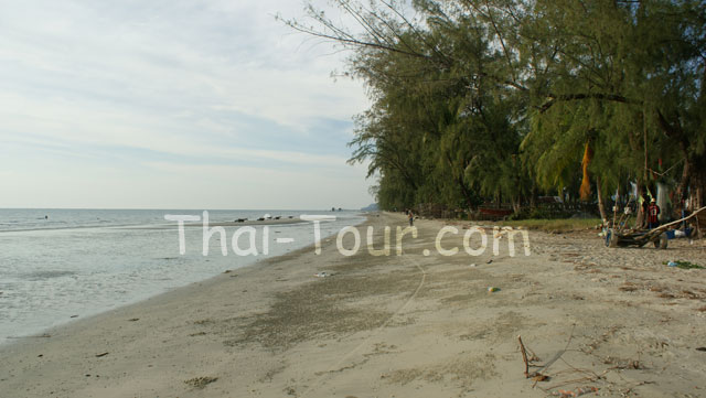 ที่ตั้ง - อยู่บริเวณหลัก กม. 41 เลี้ยวขวาเข้าไปตามป้ายบอกทางเป็นทางดินแคบ ๆ ผ่านสวนเงาะประมาณ 1 กม. เศษ สุดทางดินเป็นบ้านชาวบ้าน ต้องเดินข้ามสะพานไม้แคบ ๆ และผ่านพงหญ้ารก ๆ ไปอีกประมาณ 200 ม. จึงจะถึงตัวหาด
