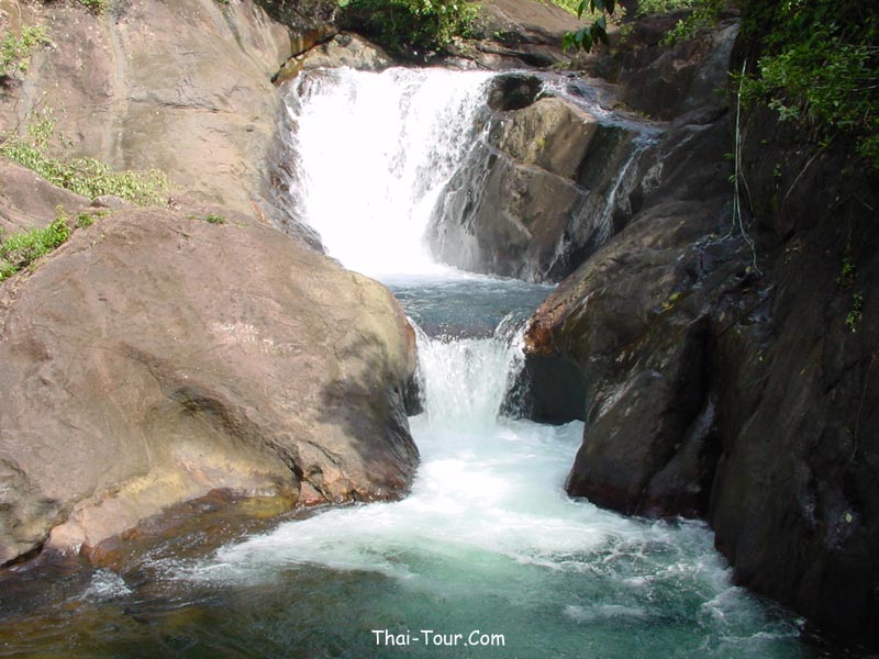 เดินผ่านสวนผลไม้เข้าไปประมาณ 500 เมตร เป็นน้ำตกขนาดกลาง