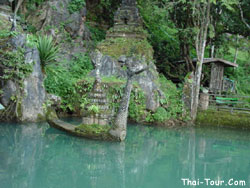 หน้าถ้ำมีธารน้ำไหลผ่านเต็มไปด้วยปลาหลายชนิด