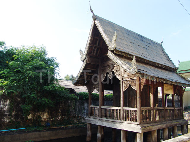 หอไตรนี้สร้างไว้กลางสระ (ปัจจุบันเป็นสระคอนกรีต)