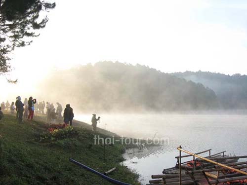 ภาพอันสวยงามของไอหมอกที่ลอยเหนือทะเลสาป กับบรรยากาศอันหนาวเหน็บในยามเช้า ทำให้ ปางอุ๋ง กลายเป็น