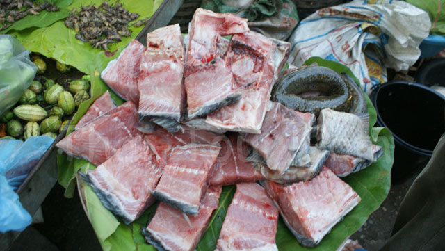 ตลาดยามเช้าแม่สะเรียงนี้ มีอาหารทะเลมากมาย และผักปลอดสารพิษ ที่สด