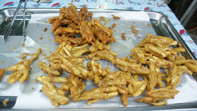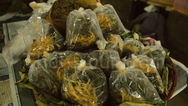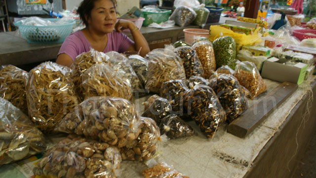 ปลาแห้ง ถั่ว เห็ดหอม หมูยอ เส้นก๋วยเตี๋ยว แหนม ปลาทอด หมูกรอบ ปลาเส้น ห่อหมก ฯลฯ