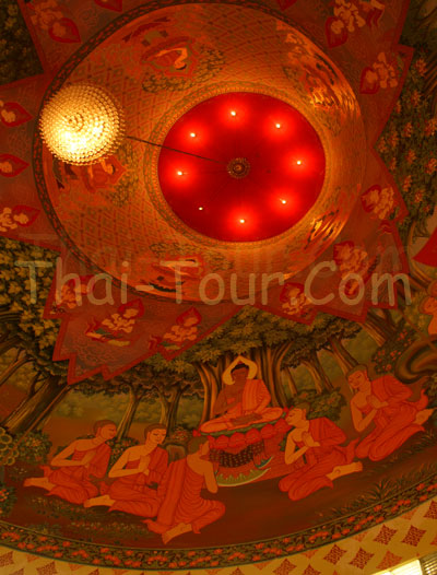 ทิศตะวันตก วาดภาพสังเวชนียสถาน ๔ ตำบล ด้านตะวันออกวาดรูปพระเถระผู้ทรงคุณ-ธรรม ด้านต่าง ๆ และวาดรูปพระเวสสันดร