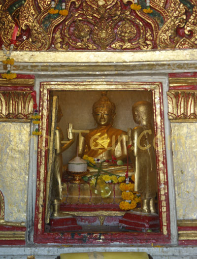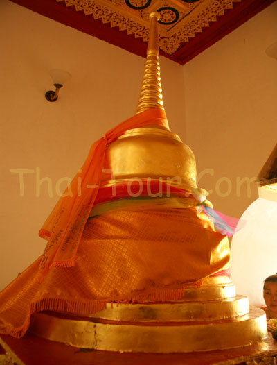 มีรูปพระอุณาโลมซึ่งเป็นสัญลักษณ์ของพระพุทธองค์ประดิษฐานบนบัลลังก์อยู่ในบุษบก