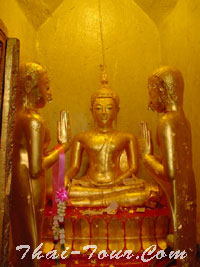 พร้อมกับปลูกต้นมหาโพธิ์ 3 ต้นบนชุกชี เรียกว่า โพธิ์สามเส้า