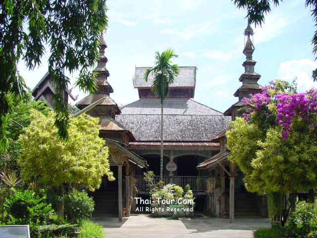 ตั้งอยู่บนถนนยันตรกิจโกศล ตำบลทุ่งกวาว ห่างจากศาลากลางจังหวัด 1 กิโลเมตร เป็นวัดไทยใหญ่ สร้างแบบสถาปัตยกรรมพม่า หลังคาซ้อนลดหลั่นเป็นชั้นประดับประดาลวดลายฉลุ อารามเป็นไม้สัก ใช้เป็นทั้งโบสถ์ วิหาร และกุฏิ ภายในอารามแสดงให้เห็นฝีมือการตกแต่งอย่างวิจิตรบรรจง เพดาน และเสาฉลุไม้ประดับกระจกสีงดงาม โบราณวัตถุภายในวัด ได้แก่ หลวงพ่อสาน เป็นพระพุทธรูปที่สร้างโดยใช้ไม้ไผ่สานเป็นองค์ลงรักปิดทอง พระพุทธรูปงาช้าง ซึ่งเป็นศิลปะแบบพม่า คัมภีร์งาช้าง หรือคัมภีร์ปาติโมกข์ โดยนำงาช้างมาบดแล้วอัดเป็นแผ่นบาง ๆ เขียนลงรักแดง จารึกเป็นอักษรพม่า และยังมี บุษบก ลวดลายวิจิตรงดงามประดิษฐานพระพุทธรูปหินอ่อน