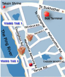 Viangtak 2 Hotel. Both close to the Ping River and the main