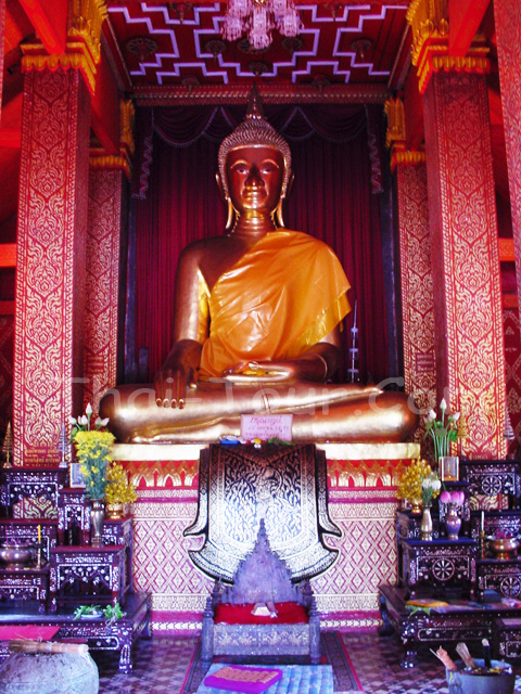 ประดิษฐานในพระอุโบสถ องค์พระพุทธรูปประทับขัดสมาธิราบ
